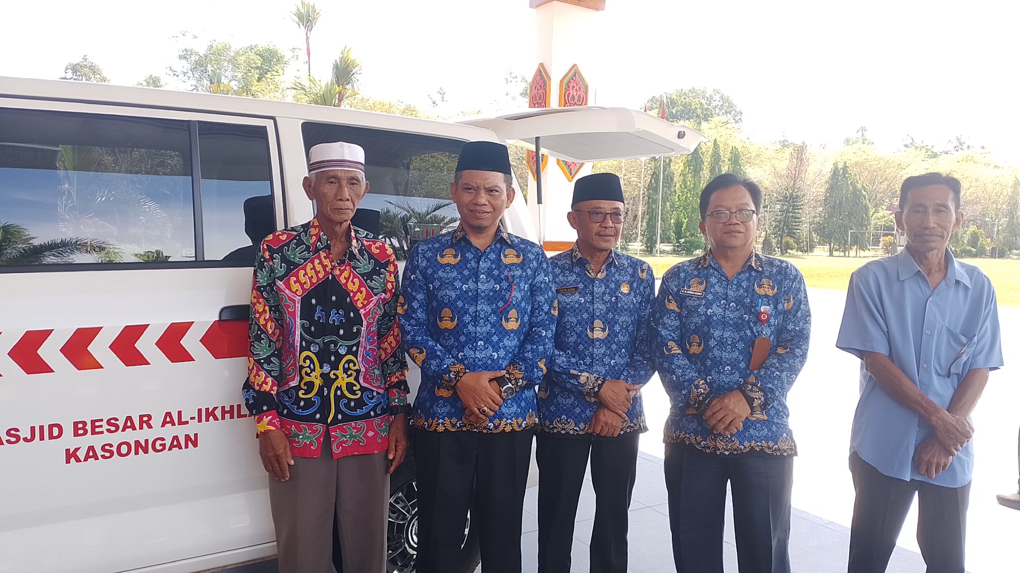 Foto : Wakil Bupati Katingan Firdaus menyerahkan Bantuan mobil Ambulans Jenazah kepada pengurus Masjid Besar Al-Ikhlas Kasongan. Di Lobi Kantor Bupati Katingan